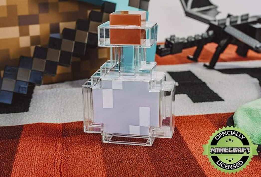 Agrega un toque mágico a cualquier habitación con esta espectacular lámpara de poción inspirada en Minecraft. Diseñada como una de las icónicas pociones del videojuego, esta lámpara es ideal como luz de noche o decoración gamer.